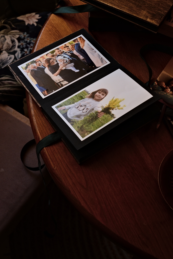 Album ma formę harmonijki, co oznacza, że rozkłada się płynnie i elegancko, prezentując zdjęcia w ciągłej sekwencji. Całość wiązana jest zieloną wstążką, która dodaje mu subtelności i naturalnego uroku.