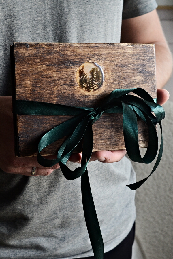 Pod żywicznym oczkiem istnieje możliwość wypalenia krótkiego napisu – imienia, daty, inicjałów czy ważnego słowa. Dzięki temu album staje się jeszcze bardziej osobisty i wyjątkowy, idealny na prezent z okazji ślubu, rocznicy czy innego ważnego wydarzenia.