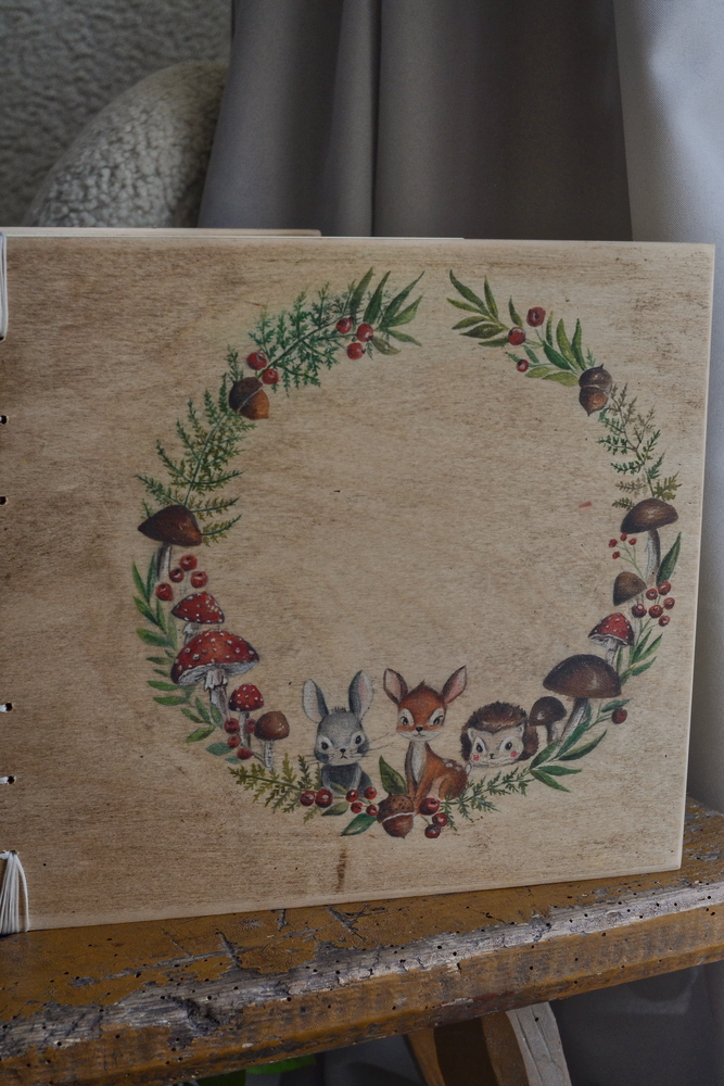 Drewniana okładka z ręcznie malowaną ilustracją