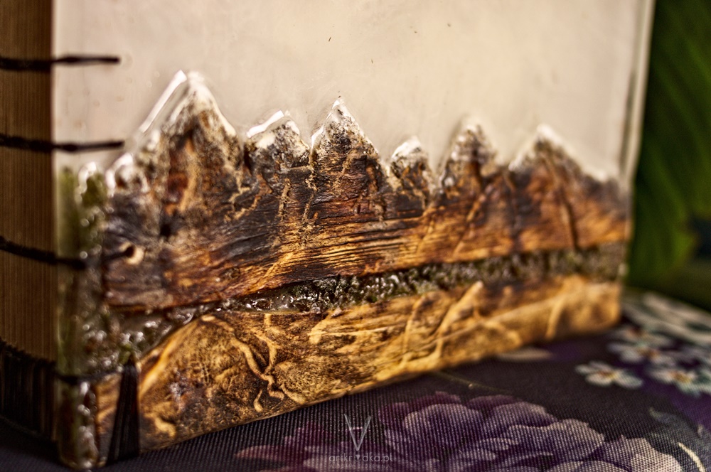 Pasmo gór zostało ręcznie wyrzeźbione w starym drewnie.