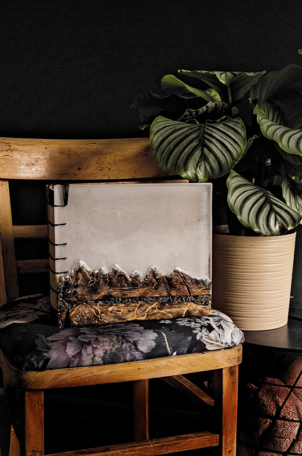 Oryginalny, drewniany album na zdjęcia wklejane.