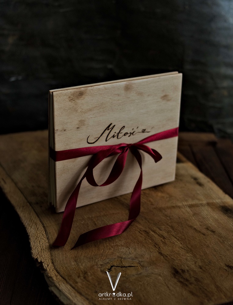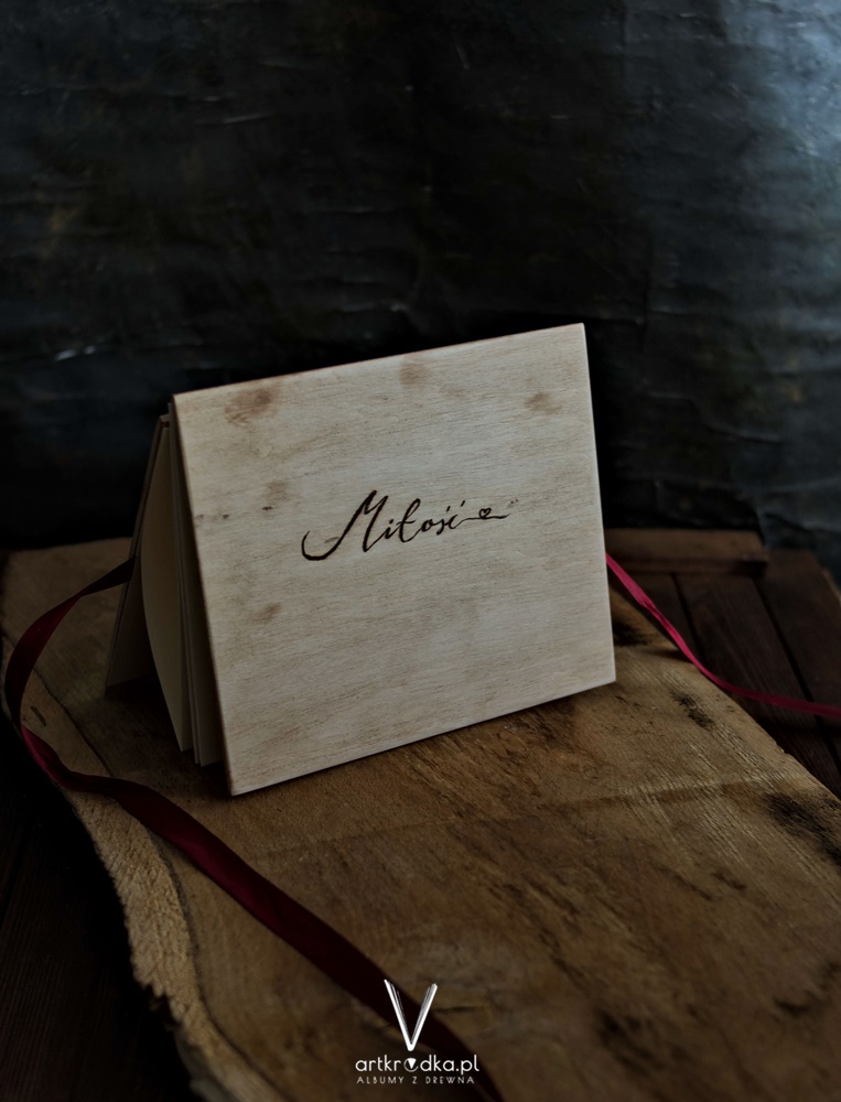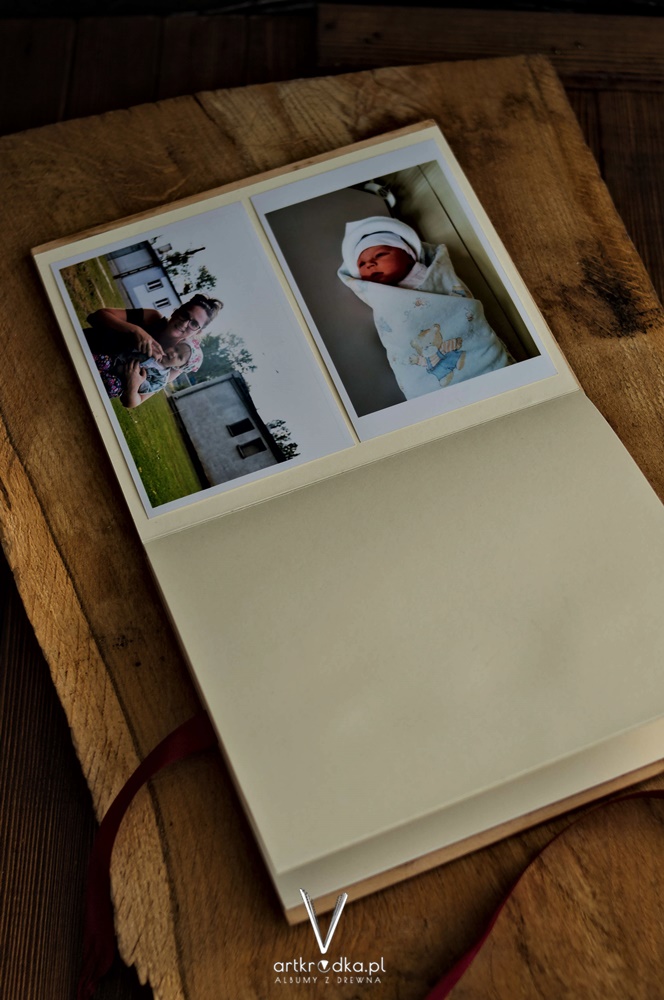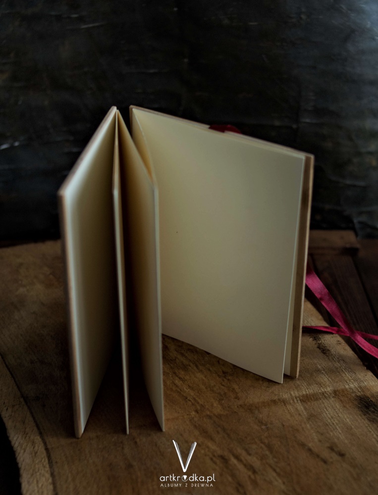 Drewniany album harmonijkowy na zdjęcia wklejane.
