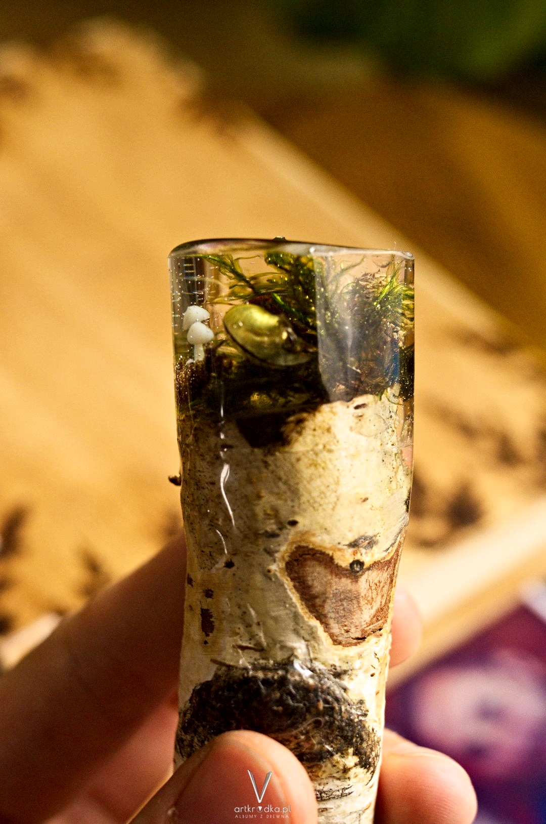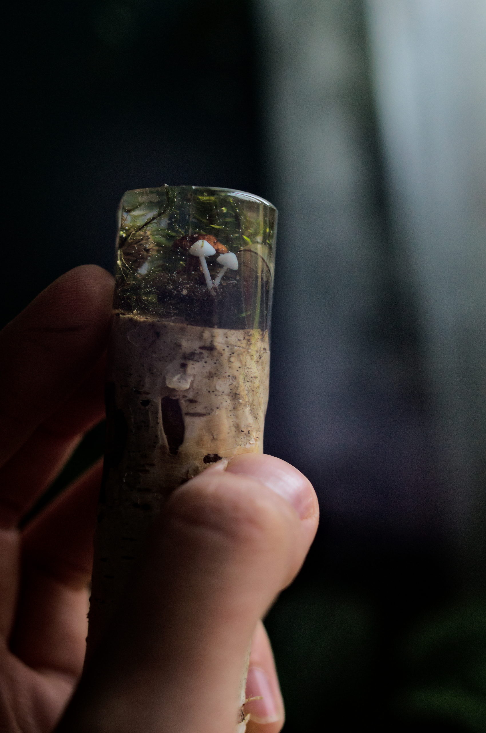 W żywicy zatopiony został mikro las.