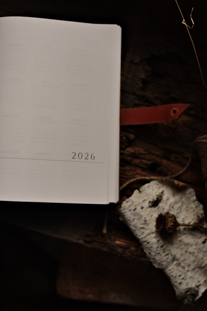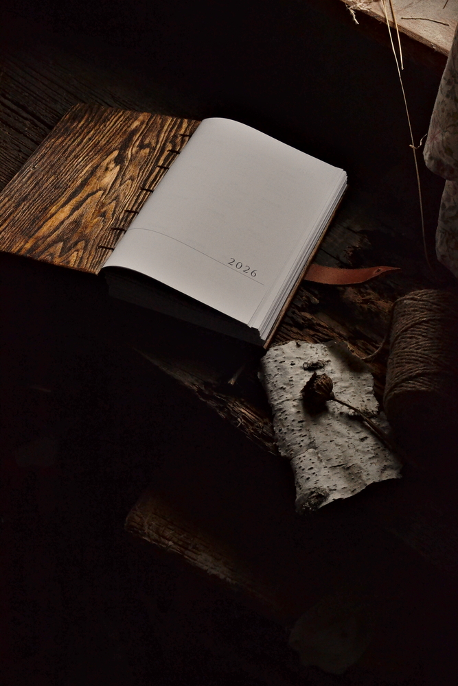 Ten wyjątkowy kalendarz 2026 powstał z myślą o osobach, które cenią naturalne materiały, rzemiosło i ponadczasową estetykę. Okładka wykonana jest z litego drewna, ręcznie szczotkowanego, postarzania i woskowanego, dzięki czemu każda sztuka ma swój indywidualny rysunek słojów oraz niepowtarzalny charakter. Na froncie umieszczony jest skórzany detal z wybitym rokiem 2026, wykonany z naturalnej skóry w ciepłym, karmelowym odcieniu.