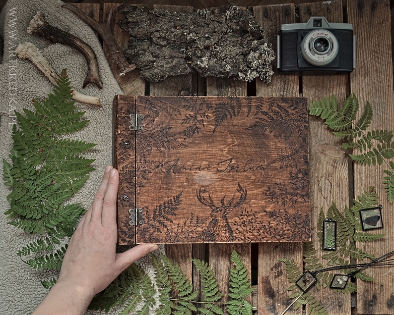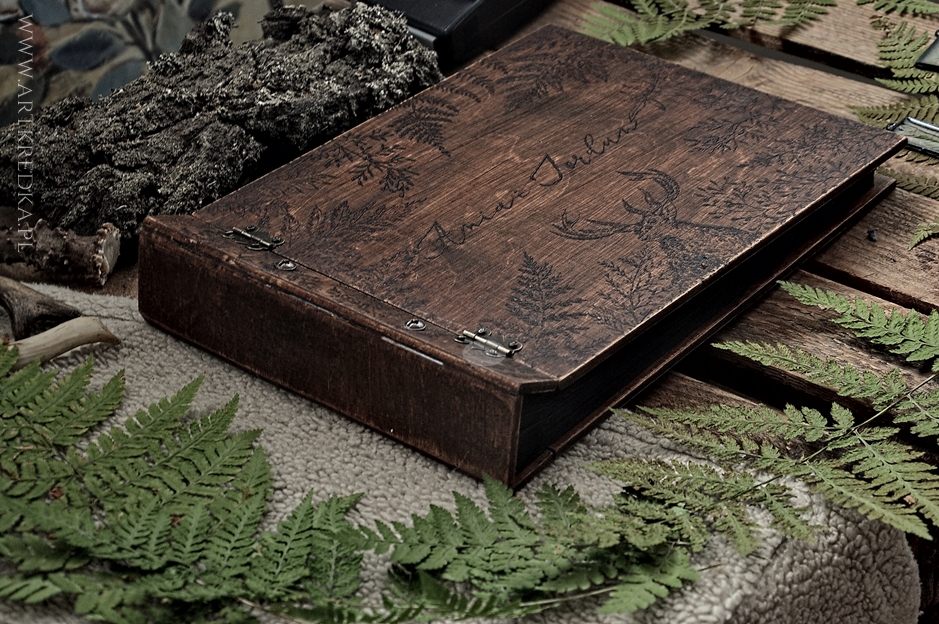 Motyw na okładce został ręcznie wypalony .