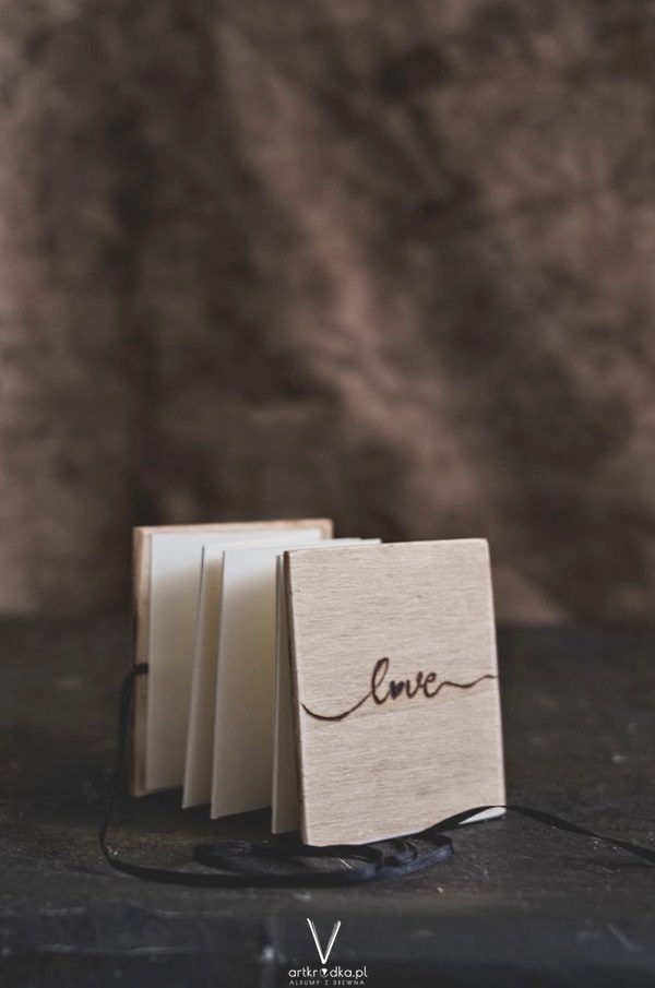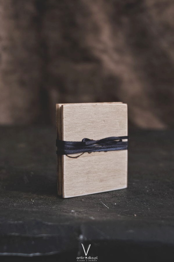 Papier w kolorze kremowym. Ma 16 stron. Napis został wypalony ręcznie. Zawiązywany na wstążeczkę.
