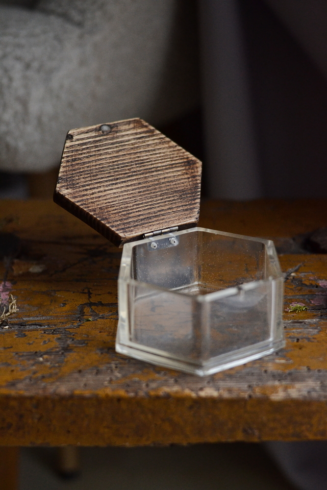 Heksagonalne Pudełko z Żywicy – Nowoczesna Forma, Naturalne Ciepło