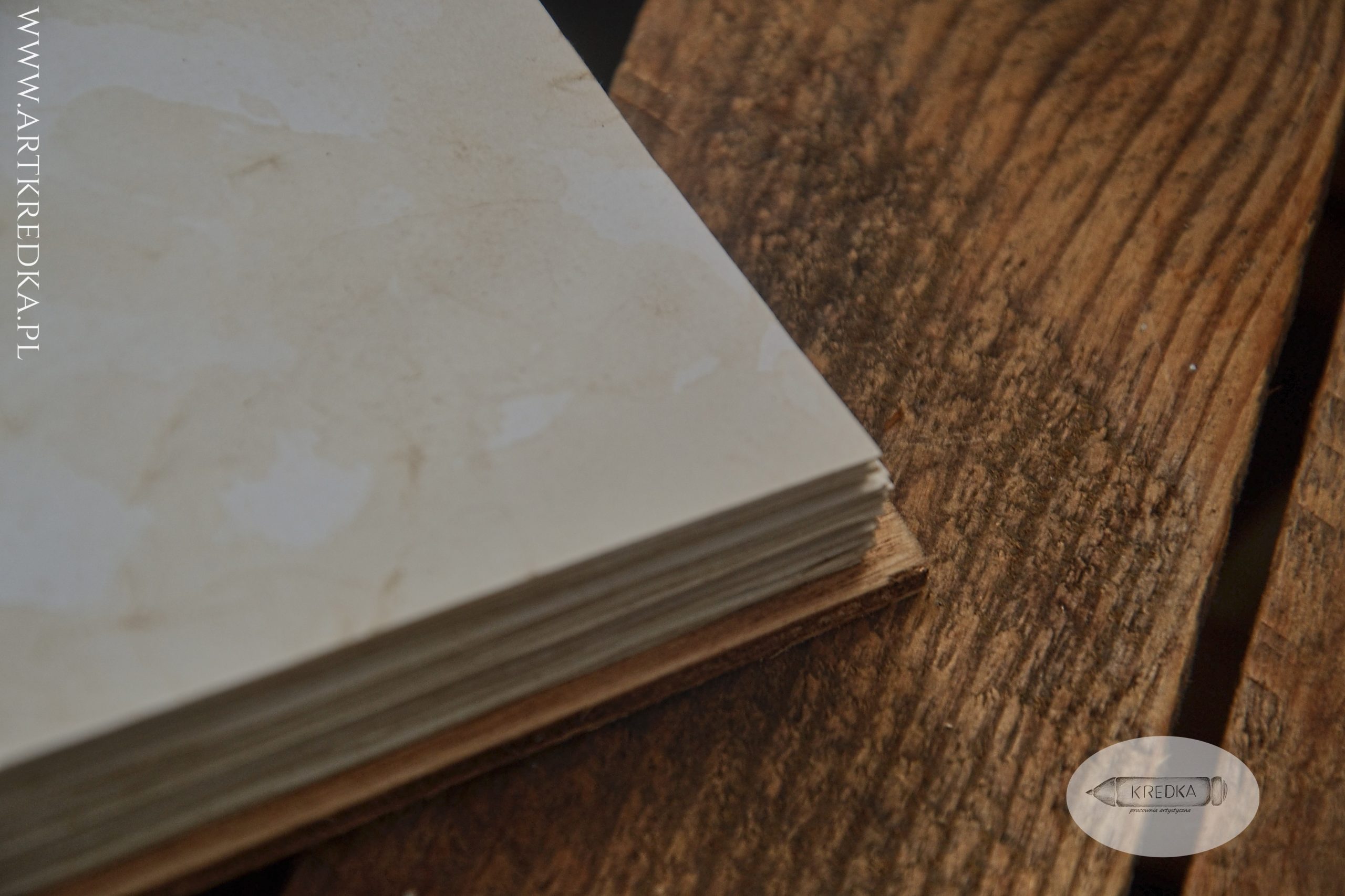 W środku 60 kartek, czyli 120 stron ręcznie postarzanego papieru o gramaturze 80 g/m2.